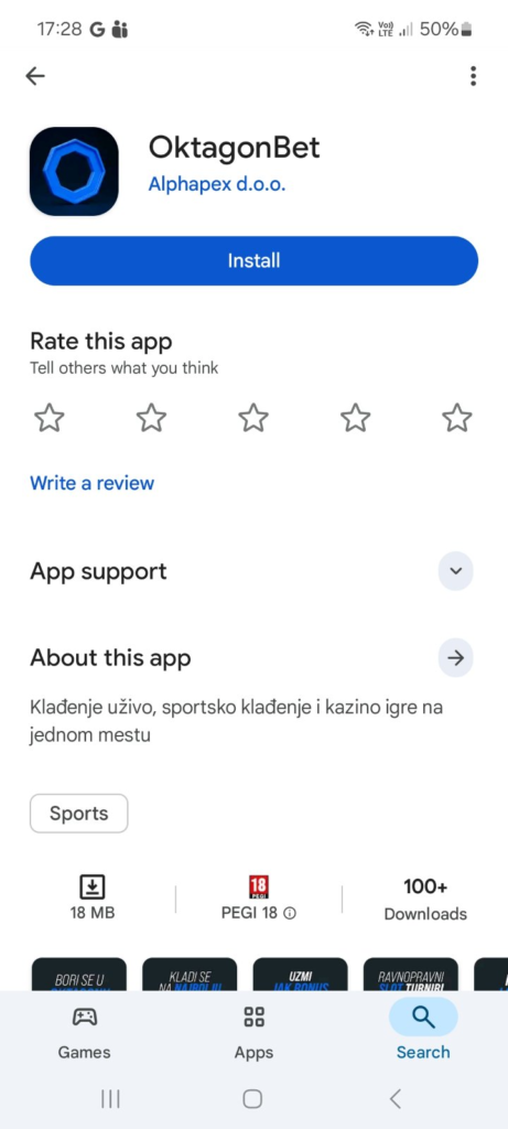 Korak 1. Pronađite OktagonBet aplikaciju na Google Play prodavnici i instalirajte u jednom koraku
